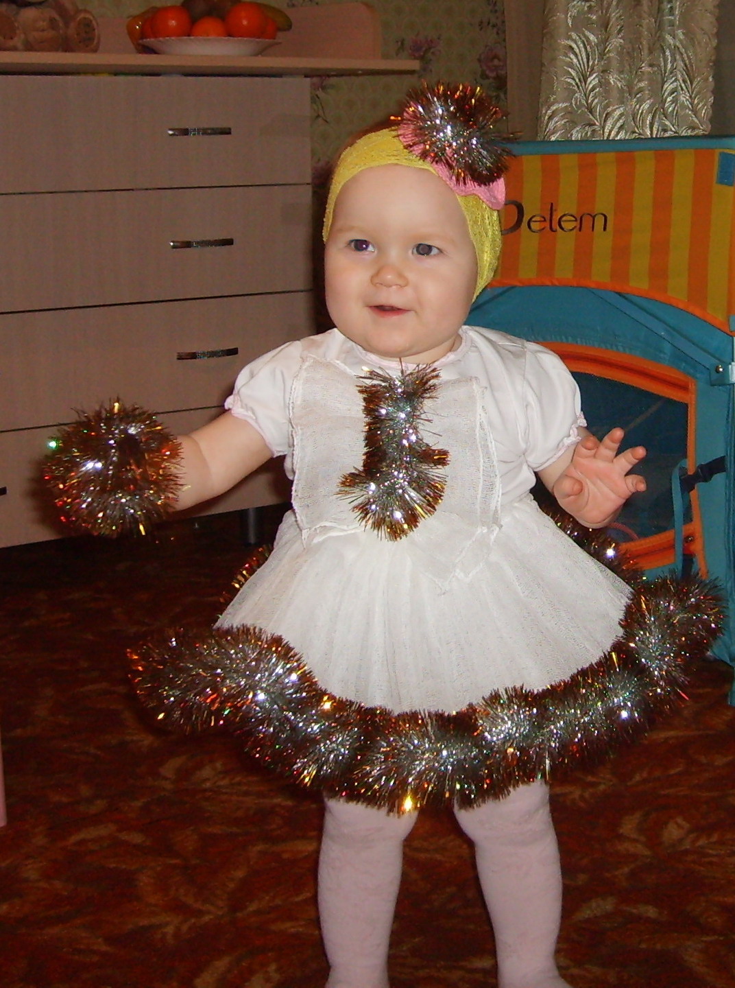 не хотела шить дочери костюм, но когда новый год уже семимильными шагами приближался к нам, вдруг захотелось поводить с ней хоровод. а какой хоровод без снежинки? итак, берем марлю и вырезаем 3 квадрата 80х45 и 3 - 20х35см.